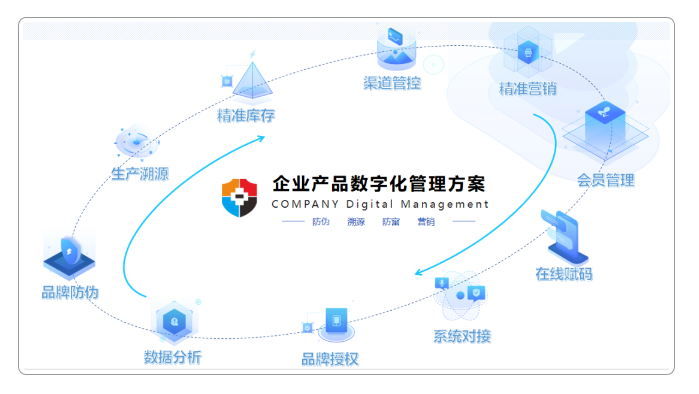 公海555000JC线路检测中心防伪通过为企业每一件商品赋予唯一的产品身份码,结合物联网、区块链、大数据、人工智能的技术手段,为企业提供产品全生命周期提供数字体管控,包括生产过程追溯、销售渠道管控、品牌保护、防伪防窜、精准营销、会员体系管理等一系列应用整合为一体的综合性的信息化服务系统平台。